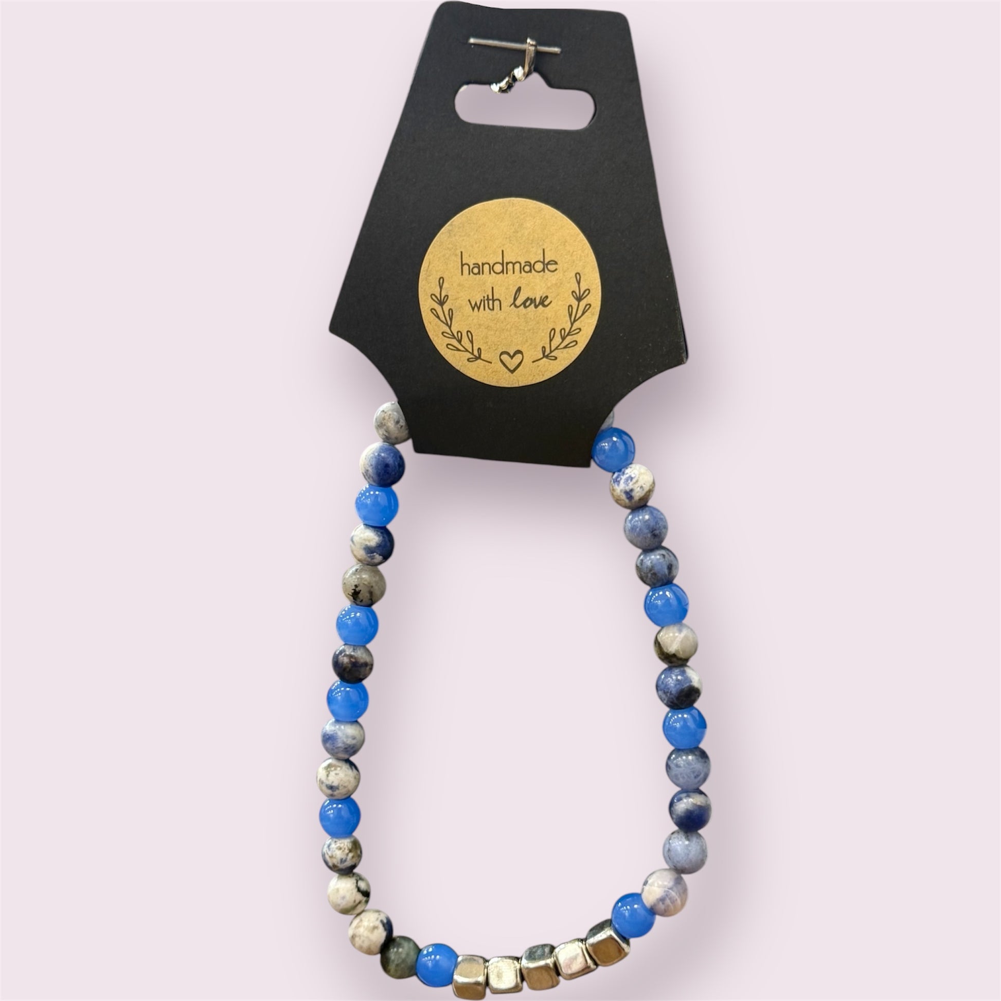 Stone and glass beaded stretchy bracelet!